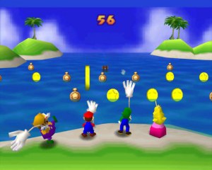 Mario Party - это игра для вечеринок для 1–4 игроков. Празднование основано на формате настольной игры, вплоть до того факта, что игроки должны бросить кубик, чтобы определить, на сколько ячеек нужно переместиться. Игроки приземляются на разные клетки, на каждой из которых находится одна из более чем пятидесяти различных мини-игр. Эти быстрые соревнования определяют, кто заработает монеты и звезды, а кто пойдет домой с пустыми руками.